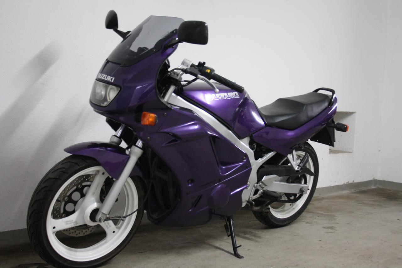 GS 500 EU, Bj. 1995, inwischen aber offensichtlich nicht mehr gedrosselt, ca. 23.500 km, Schrei-Lila.