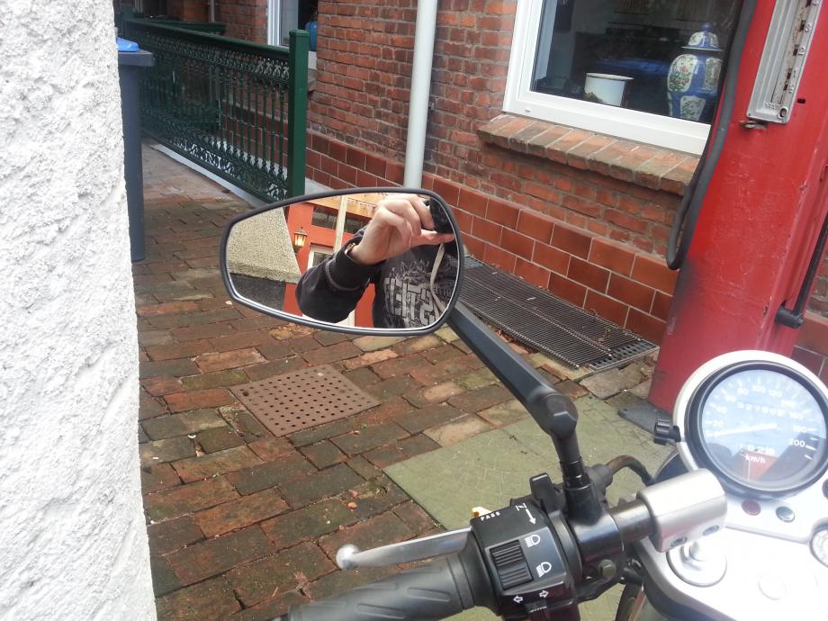 Einrichten an sich war auch kein Problem. Muss man allerdings dann beim fahren sehen ob die einstellung so passt - man kann ja auch viel nur mit dem spiegel an sich machen, ohne den arm des spiegel bewegen zu müssen. Ein Frage habe ich dann aber doch. Von der Sitzposition aus gesehen steht der rechte spiegel steiler und vor dem gasgriff, der linke spiegel steht ein wenig nach hinten und direkt über dem griff..(auf dem dritten Bild ist das bei genauem hinsehen zu sehen) Ist das normal? Achso. Hier noch die Bilder dazu. |