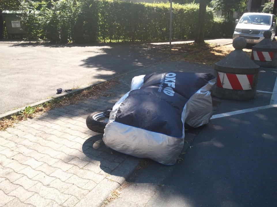 das weiss man nicht und für die Polizei ist auch nichts erkennbar. Das Motorrad stand auf einen Parkstreifen für PKW entlang einer 30er Zone, heute Abend werf ich mal ein paar Bilder rein...