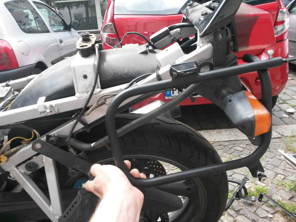 ich habe gebraucht Seitenträger gekauft und hab jetzt versucht, sie anzubauen. Über die Suche habe ich nichts gefunden, was mir weiterhilft und allein stelle ich mich anscheinend auch zu blöd an An Teilen hab ich nur die beiden Träger und dann noch den Querträger, an den das Nummerschild kommt. Vielen Dank! |