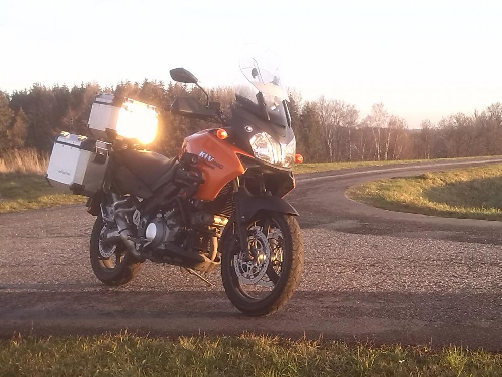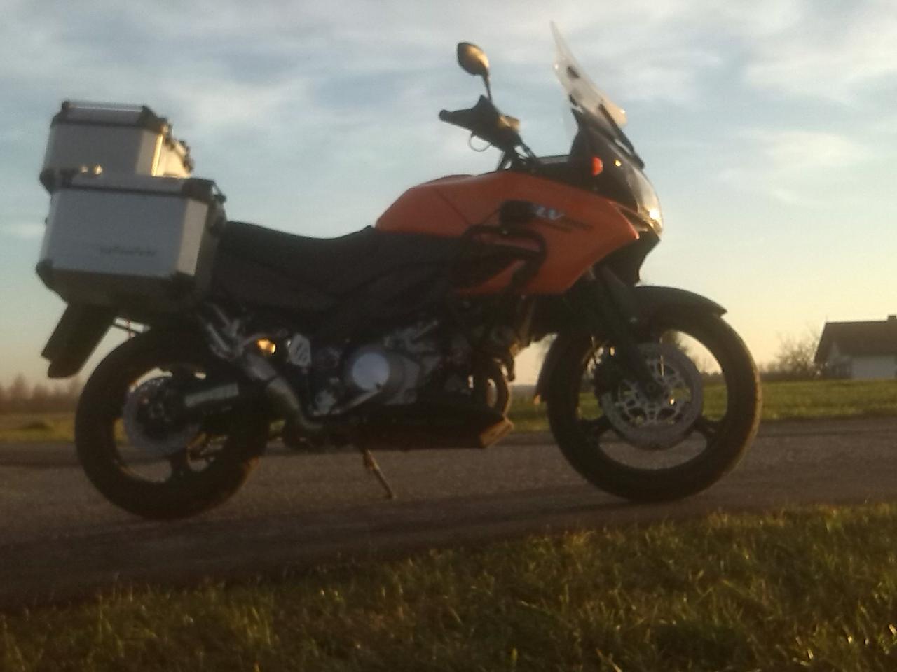 Das SW Motech Alurack ist dann doch rausgefallen, da es nur am Soziusgriff angeschraubt wird. Der Koffer ist recht voluminös.