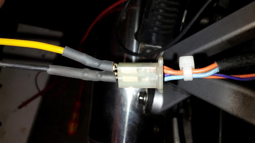ich habe den universellen Blinkgeber in meine GS500E eingebaut. Er blinkt einwandfrei mit den Originalen 2x21W - Lampen und die Kontrollampe geht auch tadellos. Es muss nur ein kleines Adapterkabel von Flachsteckhülse 6,3x0,8mm auf Flachsteckzunge 2,8 x 0,5 mm gebaut werden. Für Leute, die keine Lust auf Crimpen und Löten haben, kann ich die Kabel zum Blinkgeber mit anbieten. Die 15cm Kabel erleichtern auch die Anbringung des Blinkgebers am Rahmen. Am Stecker ist Blau Minus 49a (Kabel zum Schalter und den Lampen) gegen Masse und Orange ist Plus 12V kommend vom Zündschloss. Als Tip: (...das war etwas unschön herauszufinden. Ich habe einfach mit Zündung AUS und ohne den Blinkgeber die +12V von der Batterie mit einem Kabel an die Kontakte gehalten und dann den Blinkschalter betätigt. An 49a (-) leuchten die Lampen an 49 (+) passiert nichts. Nur falls mal jemand andere Kabelfarben verbaut hat.) Einbau siehe Fotos. Gelb ist Plus 49 und Schwarz ist Minus 49a. Grüße von S.Guttke |