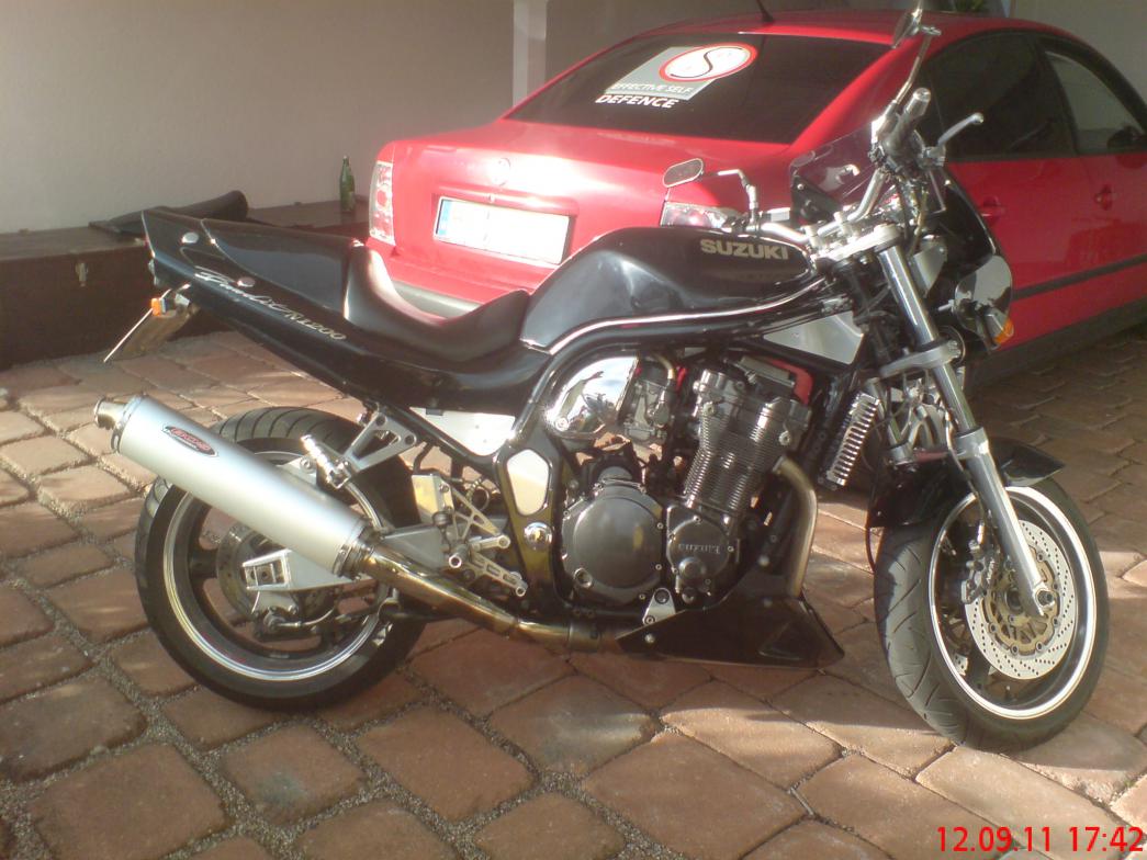 Ich habs getan, ich gehe fremd ![]() Ich hab mir heute Nachmittag eine Bandit 1200 Kult von Ende 97 mit 28.400 km gekauft. Ist einiges schönes dran: Einmannsitzbank, BOS Auspuff *geiler Sound*, Lucas Fußrastenanlage, Stahlflex vorne und hinten, Original und Laserauspuff mit dabei. Der Laser soll sehr sehr laut sein ![]() Und sie hat Dampf, RICHTIG Dampf. Meine Fresse geht die vorwärts. Ich grinse immer noch Natürlich behalte ich meine Kleine und bleibe auch dem Forum treu
