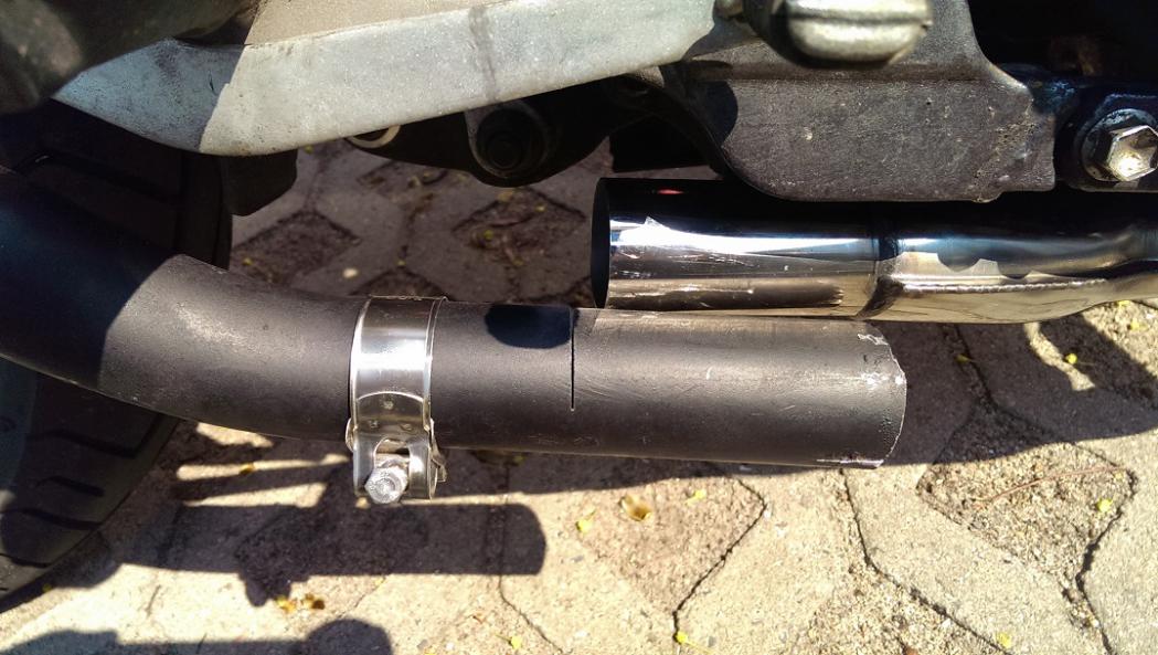 Mein Auspuffrohr mit Hitzefarbe hat 46-46,5mm Außendurchmesser. Die Krümmerrohre innen sind 31mm. 46mm passen nicht so zum Anschluß mit Innendurchmesser 51,5mm. Nicht ohne Adapter. Wobei die 51,5mm auch die dickere aufgeweitete Stelle beim blackwidow sind. |