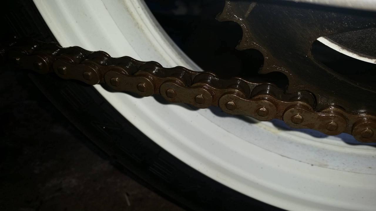 Die Kette hatte einiges an Rost angesetzt den ich größtenteils mit WD40 und einer Messingdraht bürste entfernen konnte. Allerdings leider nur Aussenseite / Aussen liegende Seite auf dem Rittzel. Wie kann ich am Besten die beiden innenliegenden Seiten entrosten ?