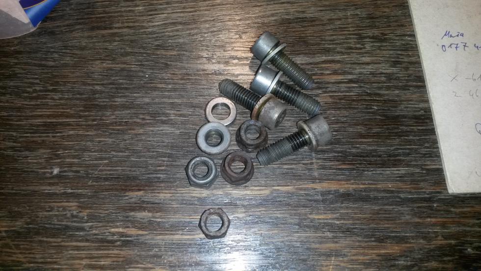 Das festbacken kann auch bedeuten, daß da entweder Unterlegscheiben unter die Hutmuttern sollten oder die Stehbolzen zu lang sind- dann kann man die Hutmuttern auch bis auf Anschlag auf den Stehbolzen drehen und sie sitzen dann bombenfest.