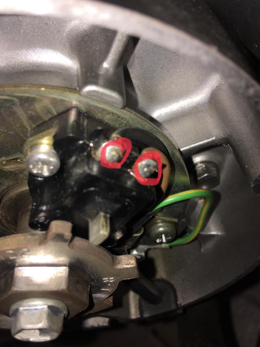 Erstmal vielen Dank für eure Antworten Da der Starter dreht, würde ich jetzt den Kill Schalter mal außen vor lassen. Also er steht auf „OFF“, weiter durchgemessen haben wir da nicht. Oder habe ich einen Denkfehler? @seife: Wir haben gestern mal durchgemessen. Also wenn wir an den richtigen Stellen gemessen haben (siehe Bild), Dann tut der Geber für die CDI am Rotor nichts. Also wir haben die Verkleidung und den Tank abgenommen. Die CDI raus genommen und am Geber an den besagten Stellen gemessen. Da zeigte das Multimeter dann „OL“ an. Waren wir da richtig? Das hieße dann, dass der Geber futsch ist oder? Außerdem haben wir die Kabel vom Geber zur CDI auf Durchgang geprüft und die waren i.O. Kann man die CDI selbst auch irgendwie prüfen? Vielen Dank schonmal Grüße Kaira |