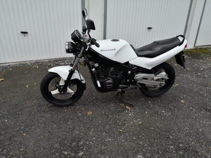 BJ 92 Umbauten: - Schneeweiß lackiert. - Rahmen und Standrohre Schwarz lackiert. - Felgen im Eigendesing lackiert. - SBK Umbau. - LED-Blinker vorne und kleine Hallos hinten. - Heck höher gelegt. - Wilberts-Federn vorne. - Stahlflex vorne. - Doppelscheinwerfer von der Tante farblich umgestaltet. - Heidenau K66 für den guten Gripp bei Laub und Kälte. - selbstgebaute Sturtzpads (da auch als vorverlegte Fußrasten nutzbar, noch nicht im Endstadium - Kettenschutz von Schwarz auf Silber lackiert