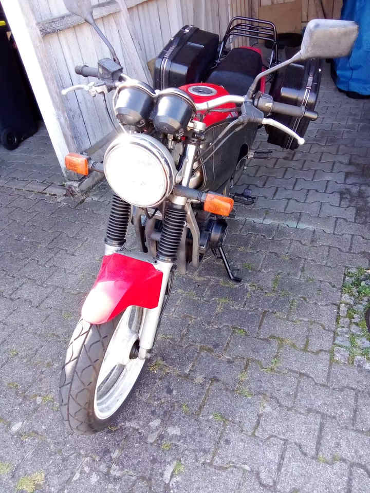 43.000 km, TÜV 7/26 mit Krauserkoffer und Tourenlenker. Neue Kette (ca 1000 km), Braucht neuen Hinterradreifen. Saisonkennzeichen Juni - August 34 PS - Umrüstteile auf 46 PS sind überwiegend vorhanden. Der Originallenker ist auch vorhanden. Zusätzlich gibt es noch Ersatztelegabel (ist o.k., knackt aber beim Einfedern) Krauser Koffer (sind aber festgeschraubt, da normale Befestigung kaputt) Ein Tankrucksack kann mitgeliefert werden. Dazu gibt es noch einen unvollständigen Ersatzvergaser. Eine kaum sichtliche Delle am Tank und Schrammen am Scheinwerferring. Habe ich schon vom Vorbesitzer geerbt. Fahre sie seit 12 Jahren und hatte beim TÜV nie Mängel. VB 750 Euro Standort Reutlingen, Schwaben |