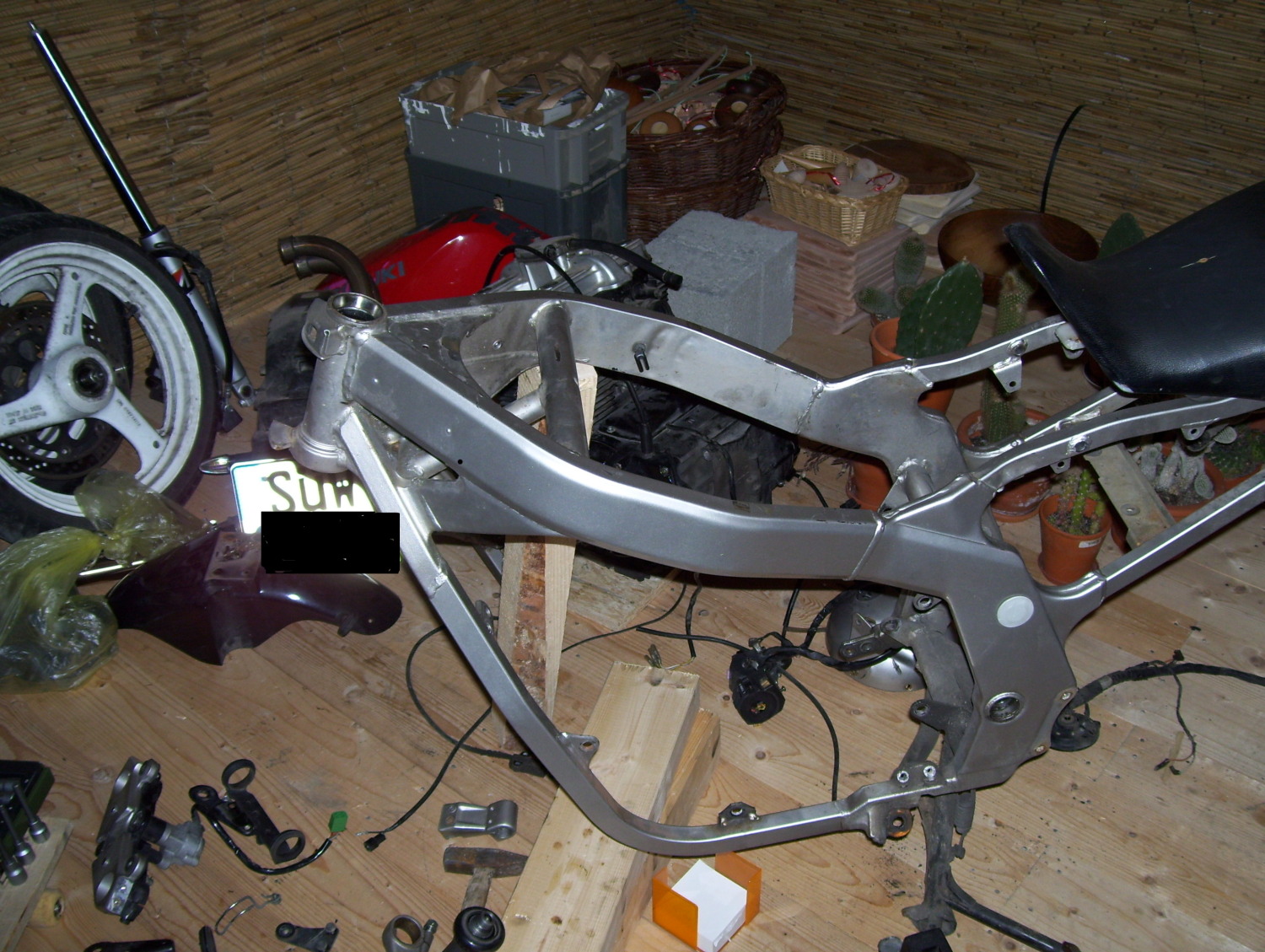 im winter wurde der motor ausgebaut und die 2 brocken unters dach getragen weil ich leider noch keine garage zur verfügung gehabt habe.
