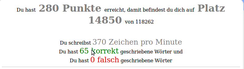 Du schreibst 302 Zeichen pro Minute