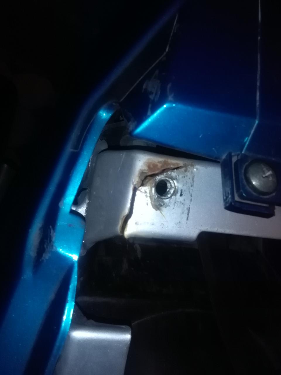 Die Halterung war schon vor geschädigt, da der Vorbesitzer so einen albernen Topcase Halter daran montiert hat.und wennjemand versucht, das Motorrad daran aufzuheben, dann reißt das scheinbar ein