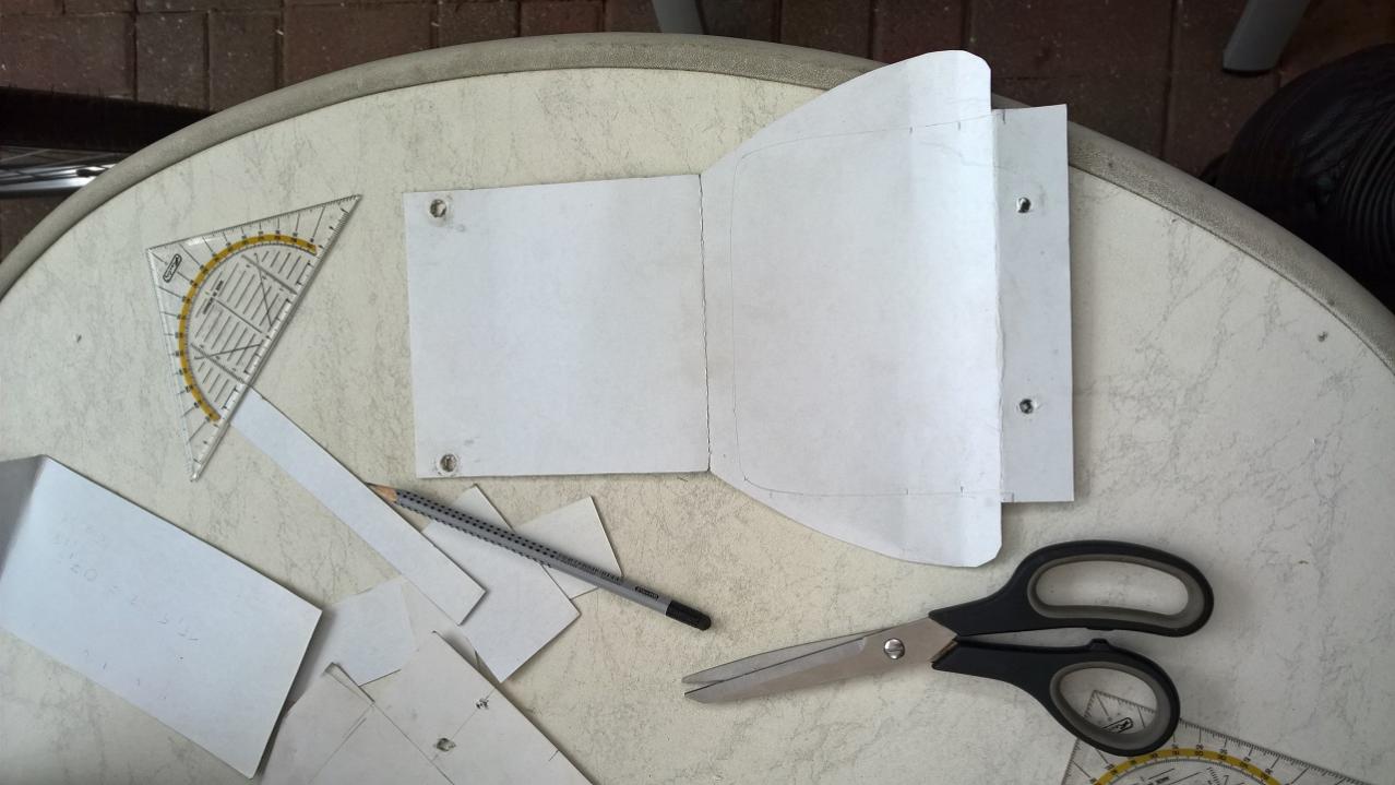 Schablone aus Pappe angefertigt (Die Finale war Nr. 5, nach der habe ich die Alu Blende angefertigt)