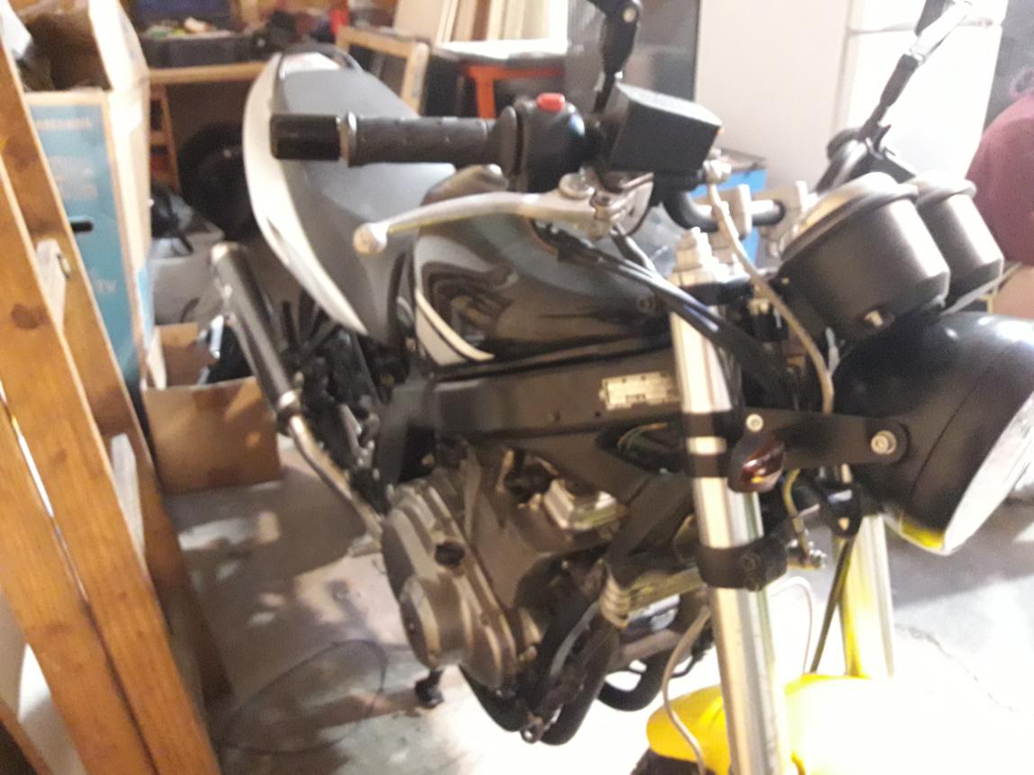 Ich heiße Dominik, 25 Jahre jung, gelernter Koch der gefallen an Motorik, Mechanik und Elektrik gefunden hat. Mit 18 meine Autos selbst repariert. Ja wo gehobelt wird fallen Späne -> Mein erstes Auto hat unter meiner Lernphase leider gelitten und den Geist aufgegeben aber ich habe dazugelernt! Voriges Jahr bekam ich von einem Freund ein Unfallmotorrad. Er hatte einen Unfall weil ein Transporter gemeint hat er muss über rot fahren. Mein Kollege fiel übers Auto, das Motorrad blieb in der Seite des Transporters aufrecht stecken. Gabelbruch und noch ein paar Kleinigkeiten. 8000KM auf der Uhr 2007er Baujahr. Ich habe sie nach 5 Jahren Garagenaufenthalt in meine Obhut genommen mit der Vorraussetzung: Ich repariere sie, kann sie solange nutzen wie ich will und gebe sie an den rechtmässigen Besitzer zurück wenn ich mir mein eigenes kaufe (sprich was stärkeres :P )