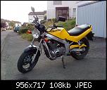 Bj.: 1998 Kilometerstand: 46.000 Änderungen: - LSL Lenkerumbau - Stahlflexleitung vorn - rote LEDs in Tacho und Dehzahlmesser - Sonderlakierung gelb, schwarz - Motorschutzbügel - Heckhöherlegung (liegt noch auf dem Schreibtisch - Progessive Feder (warten auf die nächste Abrechnung) Die letzten beiden Punkte kann man natürlich nicht mit in die Wertung mit einbeziehen. lG Jonas |