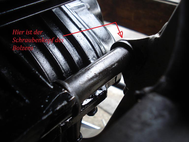 Wenn gar nix geht, bleibt dir nichts anderes übrig als die zwei Distanzhülsen zu opfern und den Bolzen abzuflexen. Wenn er im Motorgehäuse festgegammelt ist, was ich vermute, muss du den rausbohren. Vielleicht nützt es was, wenn einer dreht und der andere mit dem Hammer auf den Bolzen haut. Eventuell löst das den Schmodder soweit, dass WD 40 auch vordringen kann. Schau dir mal das Video an. Schneid aber nicht, wie die, die Laschen am Rahmen ab! http://www.youtube.com/watch?v=9a7W72zDN0A&hl=de |