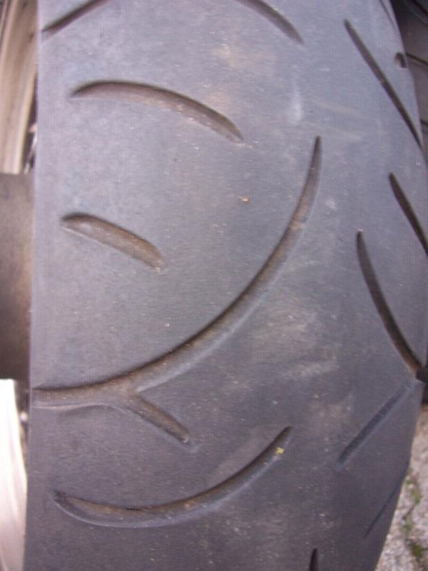 Die daraus gewonnenen Erkenntnisse möchte ich Euch nicht vorenthalten 1. der Pirelli Diablo 150/60R17 in H montiert auf einer 4"Banditfelge (siehe Anhang Bild 1 und 2 ) + sehr günstiger Reifen ( 77€ ) + Radialreifen mit sehr gutem Grip im warmgefahrenen Zustand und bei trockener Straße - Lebensdauer - Nass und kalt deutlich unter der Referenz in dieser Klasse ( PIPO ) - Optik/Angstrand ( praktisch unmöglich den 150/60er auf einer 4Zoll Felge auf "Kante" zu fahren ) 2. Bridgestone BT021R 150/70ZR17 (siehe Anhang Bild 3) + sehr guter Grip schon in kalten Zustand und auch bei nasser Straße + kann auf der Originalfelge ( geänderte Bremsankerstrebe erforderlich ) problemlos auf Kante gefahren werden + Lebensdauer - erhöhter Radumfang bedingt eine verlängerte Übersetzung , daher nicht für gedrosselte Maschinen zu empfehlen - fühlbar schwerer als ein 150/60 - verändert die Fahrwerksgeometrie (1,5cm höheres Heck ) allgemein gilt : natürlich müssen beide Reifengrößen in die Fahrzeugpapiere eingetragen werden um im Straßenverkehr zulässig zu sein das letze Bild zeigt links den BT und rechts den diablo |