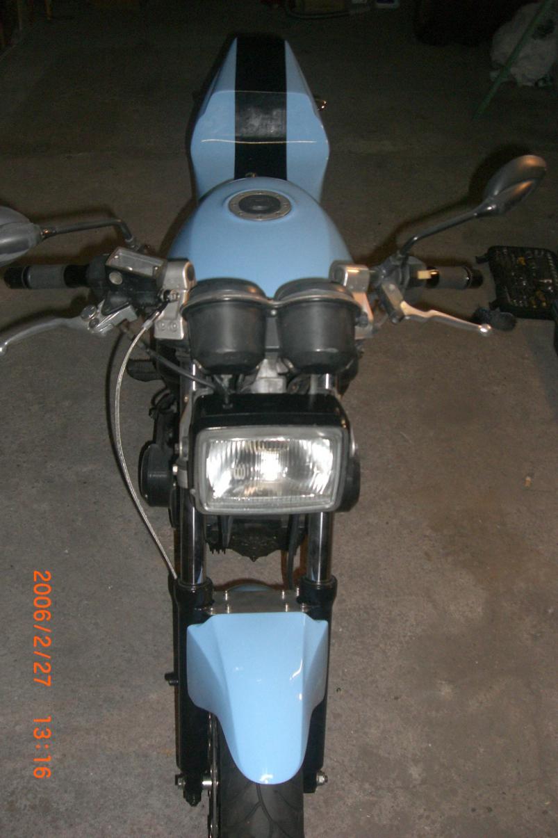 hab nach längerer Schrauberpause (wegen Nachwuchs und durch die Schwangerschaft meiner seeeehr launischen Frau) mal wieder ein bißchen Zeit, mich um die Mopete zu kümmern. Der erste Startversuch gestern ging schonmal nach hinten los. Dem Rattern des Starterrelais nach, vermute ich mal, daß die Batterie platt ist. Ein "Not"versuch mit einer 8 AH-Batterie brachte das gleiche Ergebnis. Naja, werd´s später mal mit überbrücken versuchen. Hier noch ein paar Fotos des aktuellen Stand der Dinge...