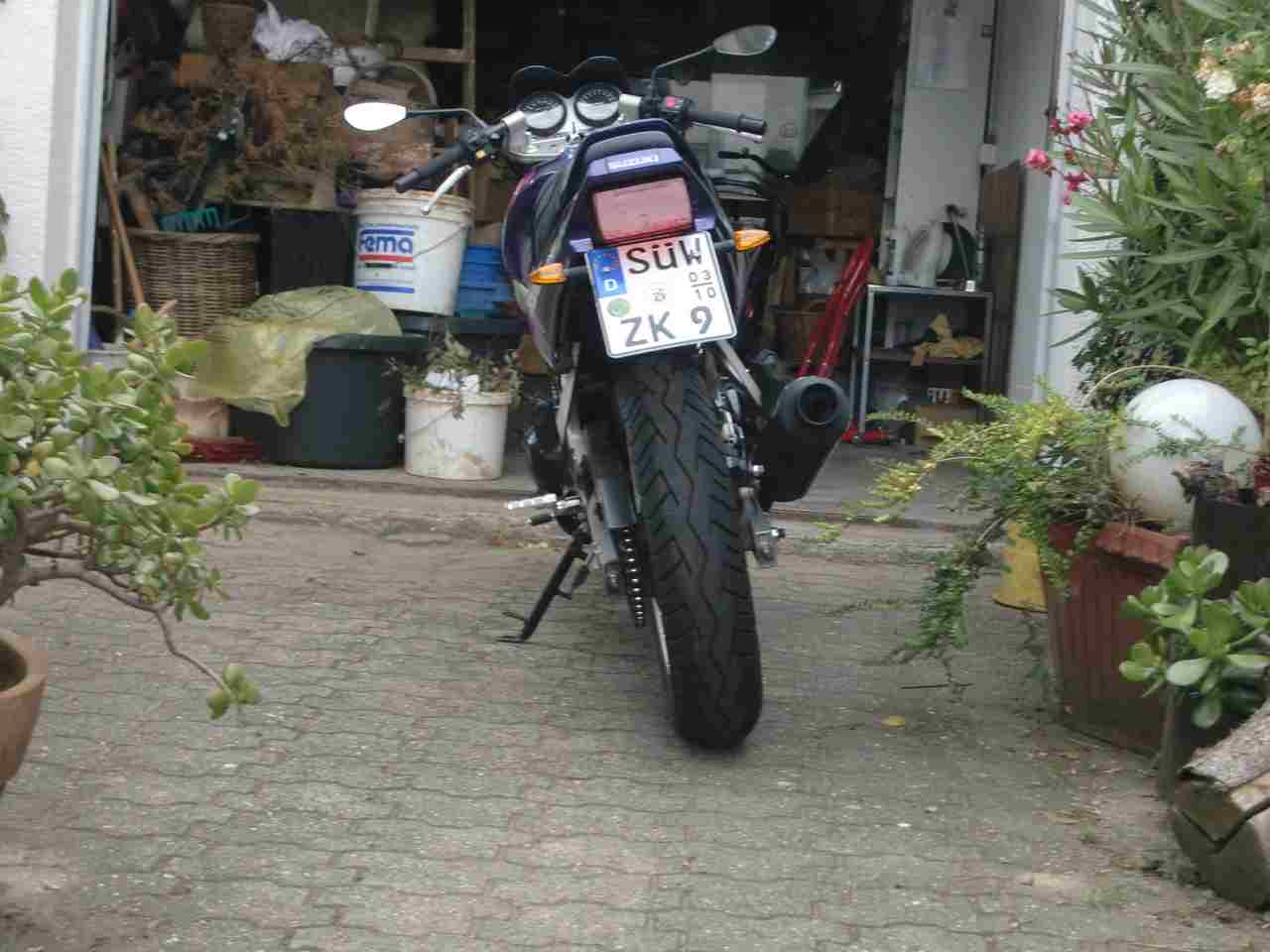 ich möchte euch auch mal meinen Umbau der GS vorstelle. Ich konnte im letzten Jahr günstig eine 92er aus Erstbesitz schiessen. Ich mag die GS wegen Ihres Gewichtes als "Kurvenjäger". Im Originalzustand hat mir einiges sowohl optisch als auch technisch nicht gefallen, somit ging der Umbau los. Folgendes wurde umgabaut bzw. geändert: - Mini Spiegel (ohne Homologation, den Tüver hats aber nicht interessiert) - Wilbers Federn vorne (Vieeeeel besser als die originalen) - Heck 25mm höher (Geänderte Fahrwerksgeometrie, etwas agiler) - Fussrasten nach hinten verlegt (LSL excenter) - Schalthebel Eigenbau (Original durch zurückverlegte Rasten zu kurz) - Stahlflex vo. und hi. - Battlax BT45 vo. und hi. (für mich der beste Reifen für die GS) - Mini Blinker - Hinteren Kotflügel bearbeitet (nur noch fragmente vorhanden) - Kennzeichenhalterung V4A - Sitzbank Einzelanfertigung - Bugspoiler von Balu - Racing (überarbeitet, Original unzureichend passend) - Puig Scheibe (bringt tatsächlich erhebliche Wirkung bezgl. Fahrtwind) - Zylinder neu abgedichtet (Kopf,Fuß,Ventildeckel) - Anlaufscheiben der Nockenwellen getauscht (bezgl dem "Klackern") - Ventile eingestellt - Vergaser synchronisiert - Auspuff lackiert und Chrom poliert - Neuer Kettensatz - Neues Öl,Kerzen und Luffi Ich bin mit den Fahrleistungen der kleinen Suzi sehr zufrieden. Das Mopped fühlt sich auf der Landstrasse Pudelwohl und macht richtig Laune. Viele Grüße an die Forengemeinde, OF112 Geändert von OF112 (09.08.2011 um 11:13:15 Uhr) |