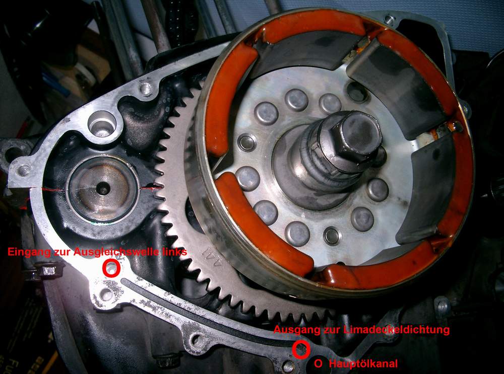 Am Limadeckel ist auch ein Ölkanal für die Schmierung der Ausgleichswelle!