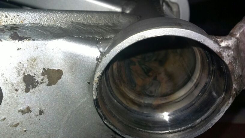 Ich bin mir nicht ganz sicher, aber ich denke, das der Lenkanschlag maßiv einen mitbekommen hat und dadurch den Lagersitz ziemlich in mitleidenschaft gezogen hat. Ich kann mich aber auch irren, aber da vorne sollte es rund sein.