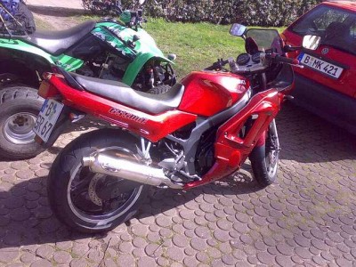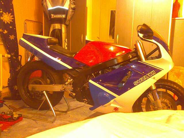 Da mir meine aktuelle Vollverkleidung von Five Stars etwas zu "Tourig" aussieht, hab ich mir kürzlich eine sportlichere RGV-Replika Verkleidung mit Einmann-Heck von Gimbel ersteigert:
