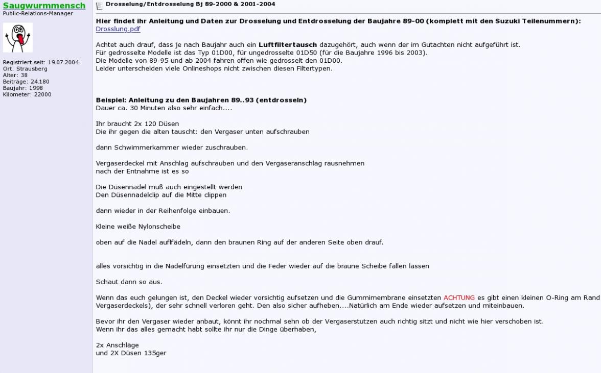 | Gs500E vergaser suppt | Vergaser - Kraftstoff - Drosseln - Tuning | 12 | 07.08.2006 22:50:39 | |