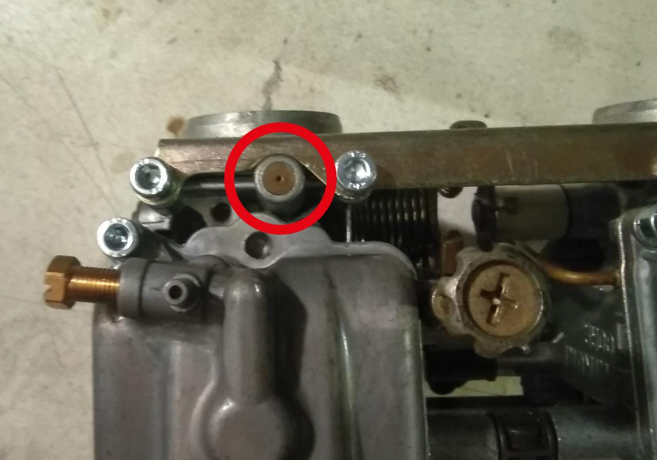 Diese Plomben sind gesteckt und mit Schraubensicherung geklebt. Habe die feinen Löcher auf 2mm aufgebohrt, eine 2,5mm Schraube reingedreht und mit sanfter Gewalt rausgezogen. 10 Minuten Sache. Interressant ist noch: Die Voreinstellung der Leerlaufgemischschraube ist bei diesem Vergaser 3 Umdrehungen und nicht 2,25 wie bei den anderen Ausführungen. Eigentlich klar bei einer kleineren Leerlaufdüse... |