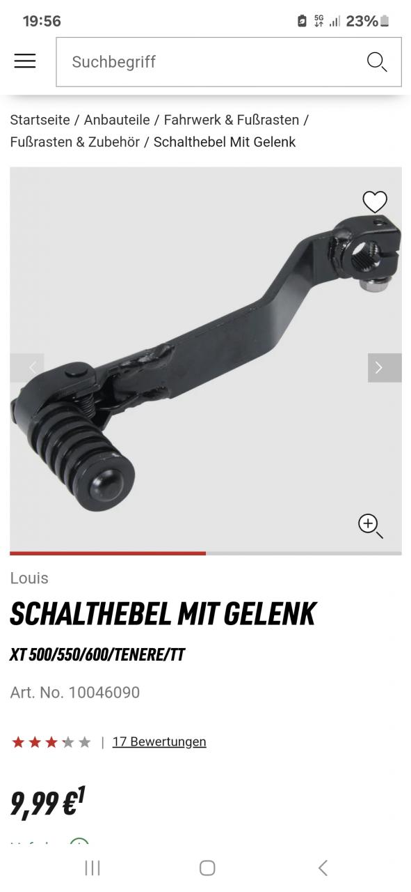 Die verstellbaren Schalthebel die ich jetzt auf die Schnelle gefunden habe sind sündhaft teuer. So ab 120 Euronen aufwärts. Das ist mir dann doch zu viel. Der Schalthebel müsste lediglich ca 2 cm länger sein. Vielleicht passt ja einer von nem anderen Bike?