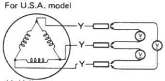 Das Ladesystem der GS500 ist im Wesentlichen ein 3-Phasen Wechselstromgenerator, welcher über eine Regler/Gleichrichtereinheit das Bordnetz versorgt und die Batterie auflädt. Der im Motoröl laufende Generator befindet sich im linken Motordeckel und wird durch den am linken Kurbelwellenstumpf sitzenden, rotierenden Dauermagneten erregt. Die Regler/Gleichrichtereinheit befindet sich unter der rechten Seitenverkleidung, etwa in Höhe der hinteren Fußrastenausleger (der Teil mit den mächtigen Kühlrippen). Wie funktioniert nun das Ganze: Der erregte Generator erzeugt eine 3-Phasigen Wechselstrom, der vom Gleichrichter in Gleichstrom umgewandelt wird und vom Regler (Zenerdiode) auf 15.5V= begrenzt wird. Das System ist so ausgelegt, daß die LiMa ab etwa 2000rpm das Bordnetz bei voller Verbraucherlast speisen kann. Darunter muß auch noch die Batterie "mitarbeiten", erst bei steigender Drehzahl wird dann auch die Batterie geladen. (Merkt man auch wenn man bei Standgas Gas gibt: Das Licht wird deutllich heller....). Das bedeutet aber auch: Sollte die Batterie mal leer sein und man muß die Mühle anschieben um zu starten, sollten alle überflüssigen Verbraucher (Licht, Griffheizung und ähnliches...) ausgeschaltet sein, sonst bleibt kaum Saft für die Zündung über...... Überblickscheck des Ladesystems: Ob es am Ladesystem überhaupt was hat prüft man am Besten mit Hilfe der Ladespannung an den Batterieklemmen: Die Ladespannung (Gleichspannung) soll 13.5V= bis 15.5V= bei 5000rpm betragen! Ist das nicht der Fall muss LiMa UND Gleichrichter/Regler geprüft werden. Achtung: Bei der Prüfung muss das Abblendlicht brennen! Für die folgenden Prüfungen muß sowohl LiMa als auch Regler/Gleichrichter NICHT ausgebaut werden! Prüfung Lichtmaschine Messung Leerlaufspannung: Von der LiMa führt ein Kabel mit 3 Polen zum Regler/Gleichrichter: Gelb / Weiß mit grünen Streifen / Weiß mit blauen Streifen Den Stecker trennen und die Leerlaufleistung der LiMa gemäß dem folgenden Bild messen: Dazu muß der Motor mit 5000rpm laufen und die Spannung zwischen den einzelnen Phasen muß mindestens 75V Wechselstrom betragen. Wenn weniger gemessen wird (oder wenn auch z.b. 2 Messungen OK sind und die 3. Messung eine extrem hohen Wert ergibt) muß von einem Kurzschluß innerhalb der LiMa-Spulen ausgegangen werden. Zur Sicherheit sollte dann noch der Innenwiderstand gemessen werden. Messung Innenwiderstand: Durchgänge/Widerstände gemäß untenstehenden Bild messen. Zwischen den Phasen muß ein Durchgang sein aber keiner auf Masse (Statorkern)! Prüfung der Regler/Gleichrichtereinheit Dazu ist das Kabel der Einheit vom Hauptkabelstrang zu trennen und die Durchgangswiderstände nach folgender Tabelle zu messen: Die angegebenen Widerstandswerte können je nach Messgerät etwas differieren, müssen aber sinngemäß zusammenpassen..... Ein paar Bemerkungen zu Problemen mit dem Ladesystem: Das GS-Ladesystem ist ein sehr einfaches und normalerweise robustes System. Allerdings gibt es ein paar Dinge, die es so gar nicht mag: 1. Zu hohe Temperaturen am Stator, denn da brennt die Isolierung der Wicklungen durch. Das passiert meistens, wenn zu wenig Öl im Motor ist und der Stator nicht mehr ausreichend gekühlt wird. Eine Überhitzung durch die Fahrweise ist kaum möglich, ausser man steht bei 35°C eine halbe Stunde im Stau....wenn da also sogar schon die Kupplung vor Hitze rupft sollte man der GS eine Pause gönnen. 2. Wenn ein Problem auftritt immer LiMa UND Regelereinheit prüfen! Es ist nicht selten vorgekommen, daß jemand vor lauter Freude endlich den Fehler bei der LiMa (oder Regler) gefunden zu haben, diese getauscht hat, nur um dann festzustellen, daß auch der Regler (LiMa) kaputt war und das neue Teil jetzt dadurch auch gleich wieder abgebrannt ist.......... 3. Eine kaputte Batterie (sulfatiert, etc.) kann auch das Ladesystem beschädigen! Also öfter mal den Säurestand und das Aussehen Zellenplatten kontrollieren. Schneeweisse Zellenplatten sind Sulfatierungsspuren und deuten auf ein Problem der Batterie und/oder bereits auch des Ladesystems hin....... 4. Manche Driver packen sich ordentlich zusätzliches E-Equipement auf die GS (Heizgriffe, Doppelscheinwerfer, etc.). Bitte beachtet dabei, daß die LiMa für eine Durchschnittsleistung von 200W (5000rpm) ausgelegt ist! Ist das Licht an, benötigt die GS selbst etwa 140Watt (inkl. Batterieladung) bei 5000rpm, bei 10000rpm allerdings 180Watt! Sie kann zwar kurzzeitig auch 280W leisten aber trotzdem: Es bleibt also nicht viel über für Zusätzliches....... Wenn die LiMa dauernd an der Leistungsgrenze läuft hält sie daß nicht lange durch...... Hier noch ein kleiner Nachtrag für Besitzer des US-Modells der GS: Falls sie eine Import-GS oder eine griechische Version von vor 1998 besitzen, könnte es sein, daß sie eine andere LiMa verbaut haben. Der Unterschied liegt darin, daß für Europa ein Stator in Sternschaltung verbaut wurde, während für die USA ein Stator in Dreieckschaltung eingesetzt wurde! Seit 1998 sollten dann nur mehr sterngeschaltete Statoren eingebaut worden sein - sicher ist das aber nicht, da bei den Händlern noch viele Ersatzteile lagern..... Was bedeutet das für die Messung: Gemessen wird genauso wie bei der normalen Version (Bild): ABER: Die Leerlauspannung muß bei 5000rpm nur 65V Wechselstrom betragen! Für die Widerstandsmessung gilt dasselbe wie für die Stern-Version. Von aussen ist die LiMa nicht von der Sternversion zu unterscheiden. Ein Indiz könnte sein, daß alle 3 Kabel in Gelb sind. Allerdings wurden ältere LiMas in Sternschaltung auch teilweise mit 3 gelben Kabeln ausgeführt - es ist also nicht eindeutig. Die Leistung beider LiMas differiert nur unwesentlich......Warum Suzuki hier unterschiedliche Versionen eingesetzt hat ist wohl eines der unlösbaren Mysterien aus Hamamatsu..... Nachtrag: Suzuki hat ab dem Bj.2003 die Regler/Gleichrichtereinheit leicht modifiziert. Erkennbar daran, daß das rote Kabel durch ein