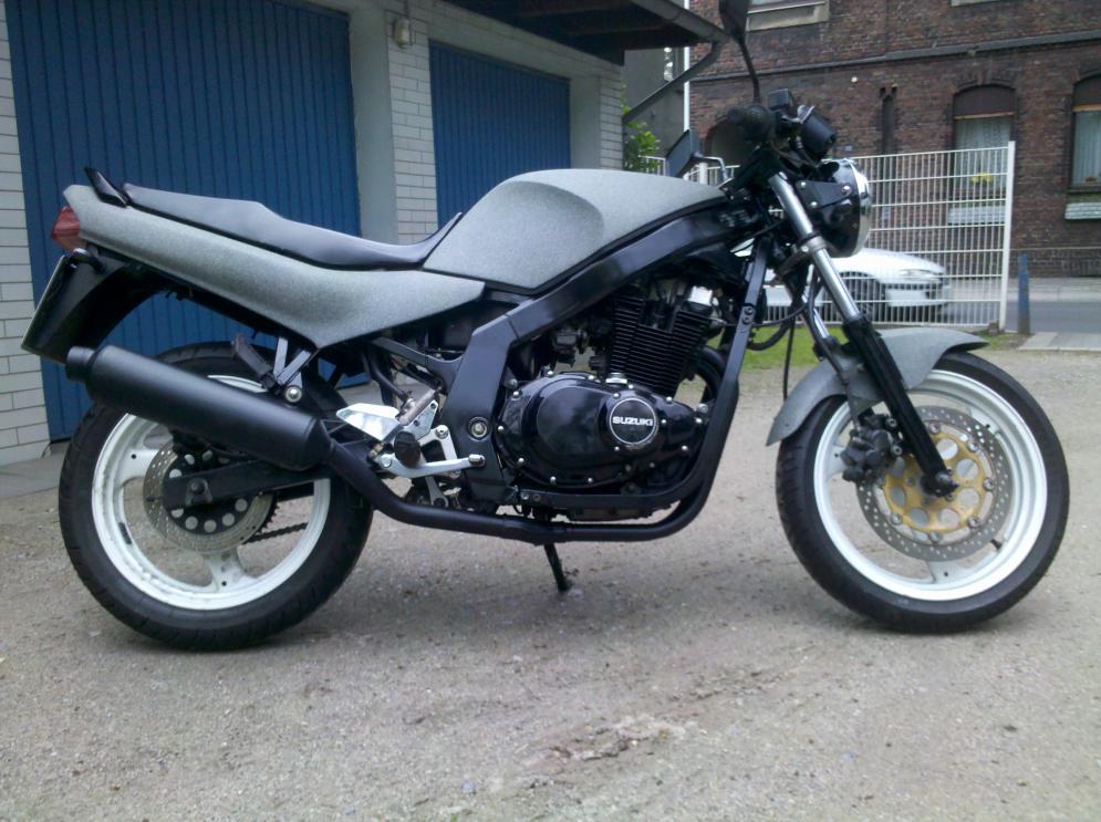 Hallo , nach über einem halben Jahr ist es nun endlich geschafft . Da es wohl kein wirklicher Umbau ist kann es auch verschoben werden . Habe lediglich sie GS komplett aus einander genommen und den Rahmen sowie einige Anbauteile und den Lacksatz neu Lackiert . Bitte nicht meckern wurde alles mit der Dose gemacht , Low Budget halt . Erneuert wurden dabei auch die Simmerringe und die Staubkappen der Gabel sowie neue Wirth Federn inkl. 15ér Öl und Gabel-Protektoren . Mini Blinker und kürzere Umlenkhebel wurden auch Verbaut .