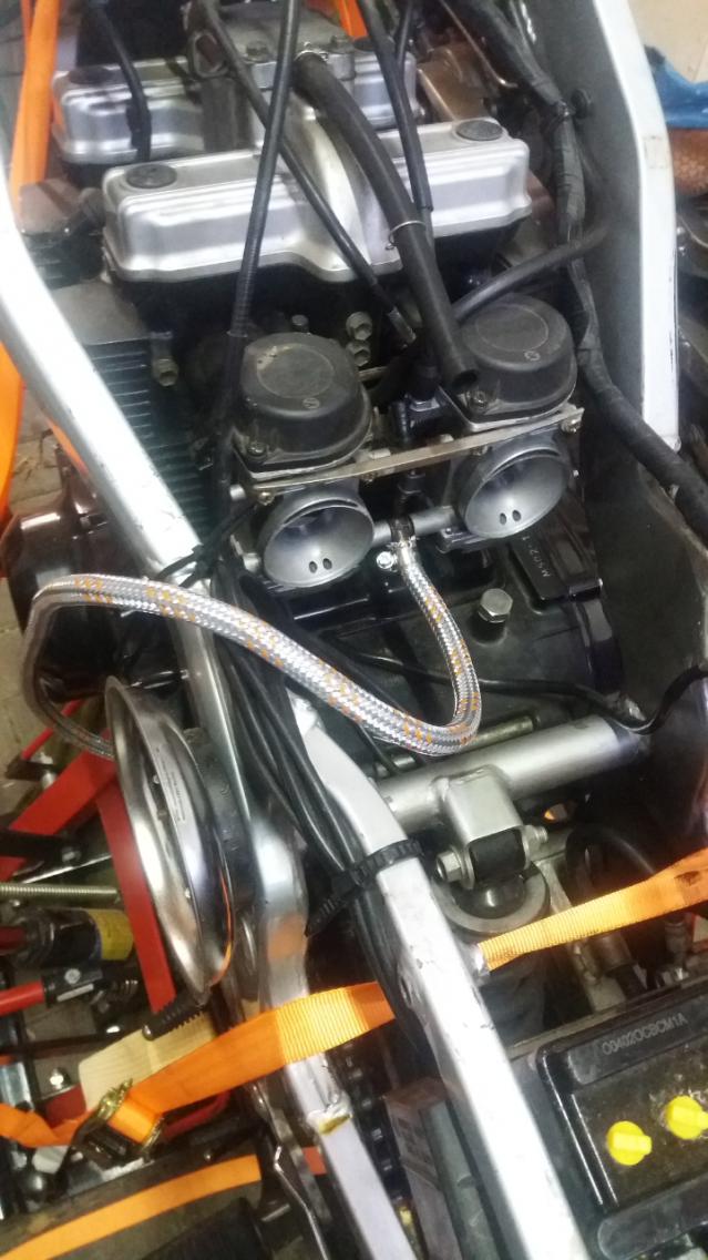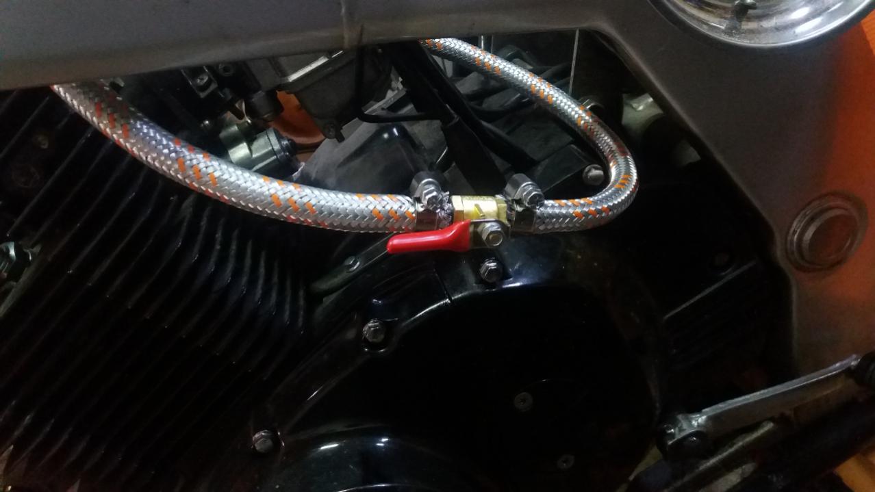 Neue Stahlflex Spritleitungen verbaut vom Tank zum Benzinhahn und vom Benzinhahn zu den Vergasern.