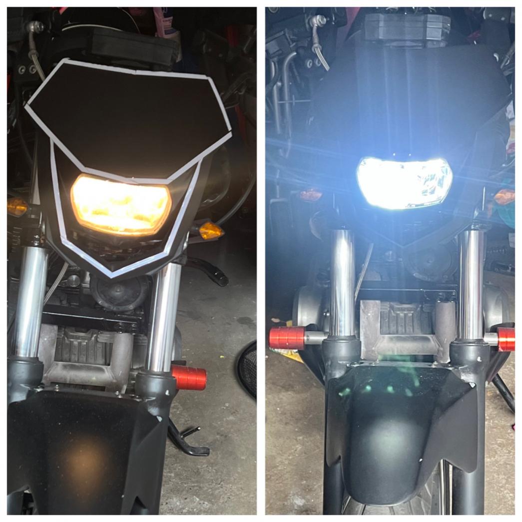 Ich hab die dunkle Funzel in der Maske die nur HS1 Leuchtmittel hatte gegen einen LED Einsatz getauscht.