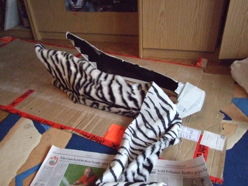 das Fell doch mal wieder abziehen will. Darauf kommt dann Sprühkleber. Mal sehen, wie gut es hält, ansonsten lass ich es weg. Zitat: