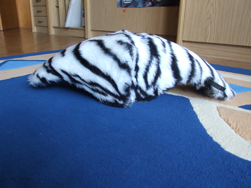 Wird bei dem Tigerfell schwer werden wegen dem Mittelstreifen...