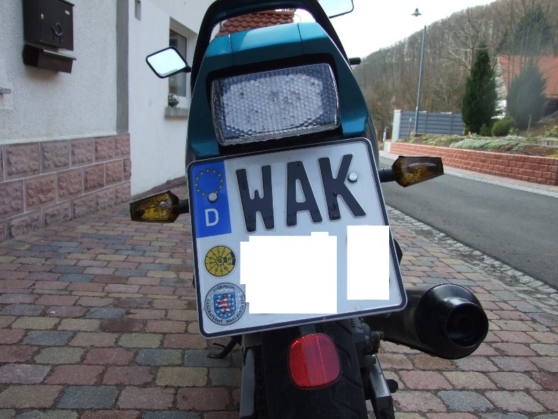Weitere Veränderungen waren Miniblinker, LED-Rücklicht und Edelstahl-Kettenschutz: