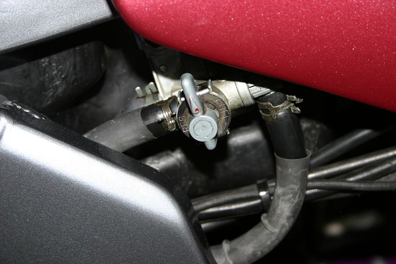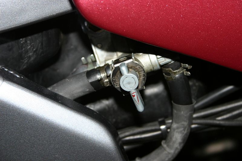 Außerdem gibt es keinen separaten Reservetank. Die zwei Schläuche, die vom Tank zum Benzinhahn führen, sind an Rohre im Tank angeschlossen, und die ragen einfach nur unterschiedlich hoch in den Tank hinein.