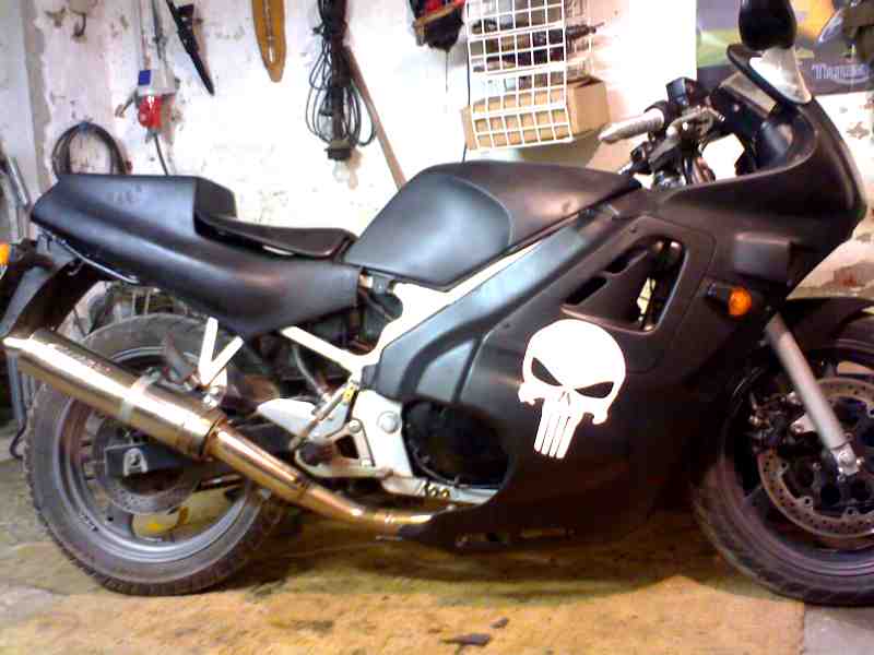 Von dir sowas zu hören gibt Bestätigung da ich deine Suzi ja auch rattenscharf fand.Kommt ja der Wagner Höcker auch wieder drauf dann ist sie im ganzen größer und breiter was das lacken angeht solls mal Candy Lack werden aber der is sehr kostenintensiv.Wer sich mit sowas auskennt wird das wissen,leider.Also wollt ich die Seiten so lassen die Front auch schwärzen den Höcker schwarz.Seitenstreifen weiß ich noch nich und Fender auch schwarz.Dann das ganze in der Punisher Optik(n anderes Design von nem Skull,bissel neumodischer aber hat was) über die ganze Verkleidung pappen und wenn nach der Bastelei wieder genug Kohle da ist und nix in puncto Haus und Nebenkosten dazwischen kommt im Frühjahr halt der Candy Lack.Was mehr Fotos angeht kein Thema aber vernünftige Fotos gibbet erst wenn alles angepaßt ist.Weil Halter müssen angepaßt und gebaut und gelackt werden da es sonst aussieht wie versuchtes Tuning mit Baumarkt Teilen und das is doof.Also dann danke fürs Feedback bisher und nen schönen Sonntag noch
