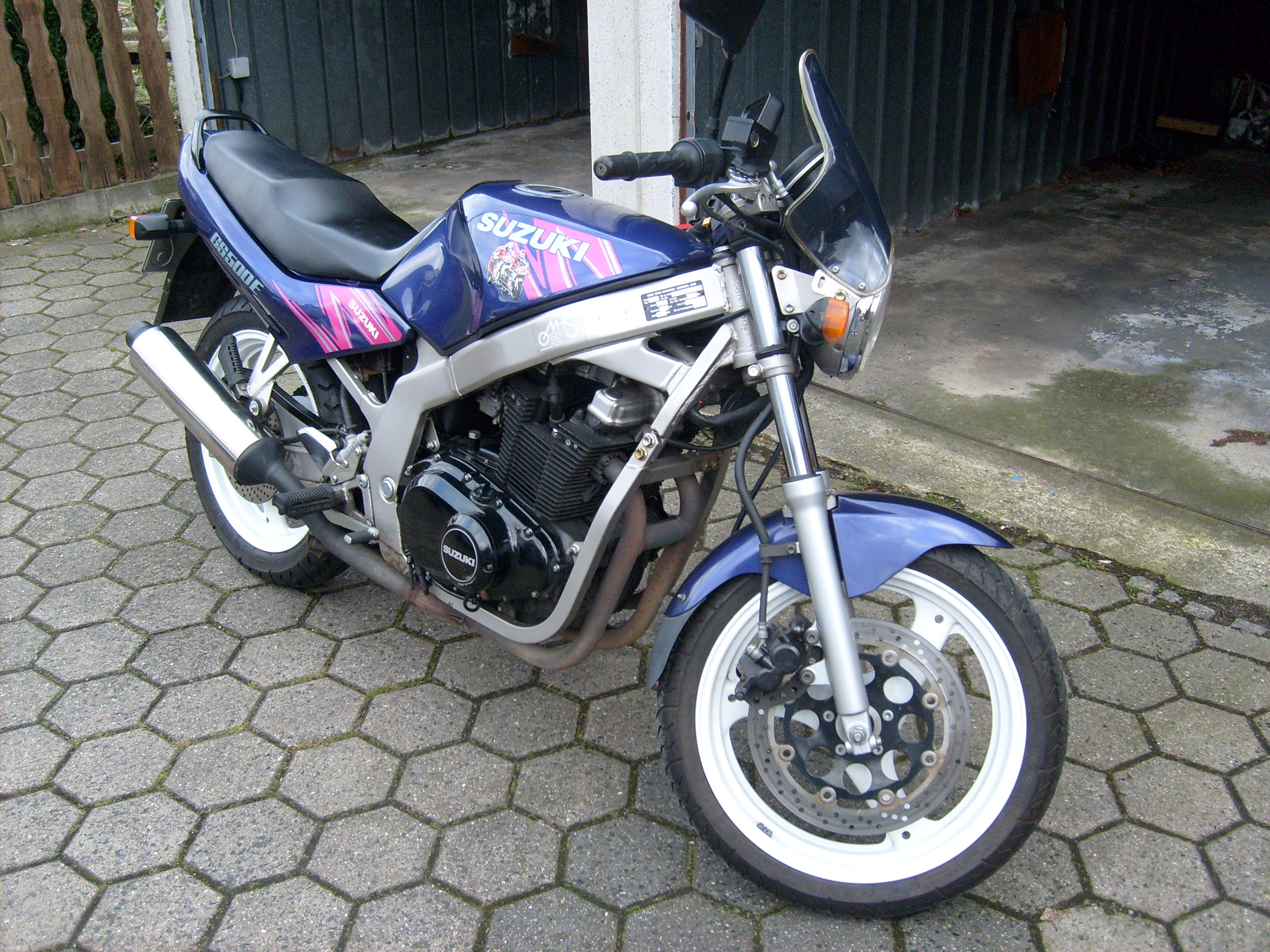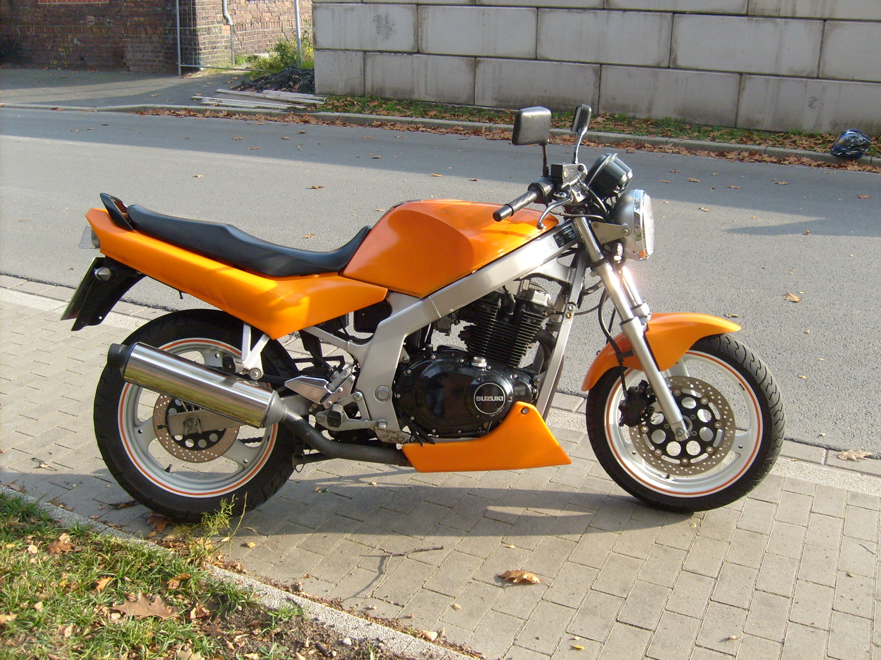 ich möchte Euch mal meine GS vorstellen. Ich habe Sie Anfang 2008 gekauft und seitdem nach und nach ein wenig meinem Geschmack angepasst. Sie ist Bj. 93, offene 46 PS, hat einen Km-Stand von ca. 32.000 und ist top gepflegt Veränderungen: -LED-Tachobeleuchtung in blau (demnächst orange) -LED-Blinker vorn und hinten von Shin-Yo inkl. lastunabhängiges Relais -Bugspoiler von MBD -Brems- und Kupplungshebel in Carbonoptik -Abblendlichtbirne MTEC Superwhite -MD-Öltemperaturanzeige -Felgenrandaufkleber in orange -Neulack in Electric-Orange-Met. vom Ford Focus ST -Takkoni Auspuff Als ich sie gekauft habe, sah sie noch so aus: [attachment=8:gxtxq4bi]S6300936.JPG[/attachment:gxtxq4bi] [attachment=7:gxtxq4bi]S6300946.JPG[/attachment:gxtxq4bi] Mir war sofort klar, dass meine GS 500 nicht so bleiben konnte. Also beschloss ich direkt ein paar Verschönerungen durchzuführen Als erstes sofort den Spritzschutz hinten und die Scheibe vorn abmontiert und ein paar Aufkleber entfernt! Daraufhin sah sie so aus: [attachment=6:gxtxq4bi]Bild205.jpg[/attachment:gxtxq4bi] [attachment=5:gxtxq4bi]Bild220.jpg[/attachment:gxtxq4bi] Schon ein wenig besser Mich störten noch die Blinker und das Rücklicht, also alles in LED-Technik! [attachment=4:gxtxq4bi]S6301325.JPG[/attachment:gxtxq4bi] Sooo... und da mir dieses LILA auf den Sack ging, habe ich die ganze Karre in Electric-Orange-Metallic lackiert! Zwar selbst mit der Hilfe eines Kollegen mit der Sprühdose aber dieses Jahr wirds nochmal fachmännisch vom Lackierer gemacht! Bugspoiler ist auch noch dazugekommen. [attachment=3:gxtxq4bi]S6302953.JPG[/attachment:gxtxq4bi] Felgenrandstreifen in orange sind auch hinzugekommen (war das ne Arbeit [attachment=2:gxtxq4bi]S6302950.JPG[/attachment:gxtxq4bi] Aber ich finde es hat sich gelohnt [attachment=1:gxtxq4bi]S6302952.JPG[/attachment:gxtxq4bi] Nun macht Sie einen Winterschlaf und wurde schön von mir geputzt und konserviert: [attachment=0:gxtxq4bi]S6303432.JPG[/attachment:gxtxq4bi] Dieses Jahr folgt: -Fachmännische Lackierung (ist grad in Arbeit) Das wars eigentlich vorerst von mir... Würde mich über ein paar Meinungen freuen! |