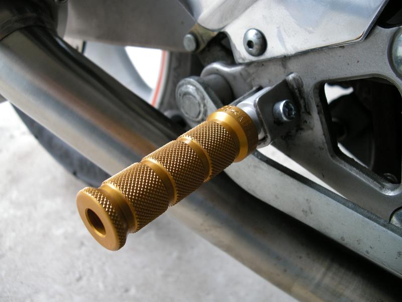 habe mal neue Fußrasten für Fahrer und Sozius montiert von MFW in gold eloxiert! Passgenauigkeit ist gut und meiner Meinung ist die Optik spitze, stehe halt auf gold :P Hatte damals an meinem Rennkart schon Bremssättel und Anbauteile in gold eloxiert... [attachment=3:325dj71k]Fußraste_01.JPG[/attachment:325dj71k] [attachment=2:325dj71k]Fußraste_02.JPG[/attachment:325dj71k] [attachment=1:325dj71k]Fußraste_03.JPG[/attachment:325dj71k] Und ich habe bei eBay was schönes gefunden, was ich mir nicht entgehen lassen konnte Eine Gabelbrückenabdeckung in Echtcarbon! Bombe... [attachment=0:325dj71k]Gabelbrücke_01.JPG[/attachment:325dj71k] Na was meint Ihr? Bin mal gespannt auf Eure Kommentare. Gruß |