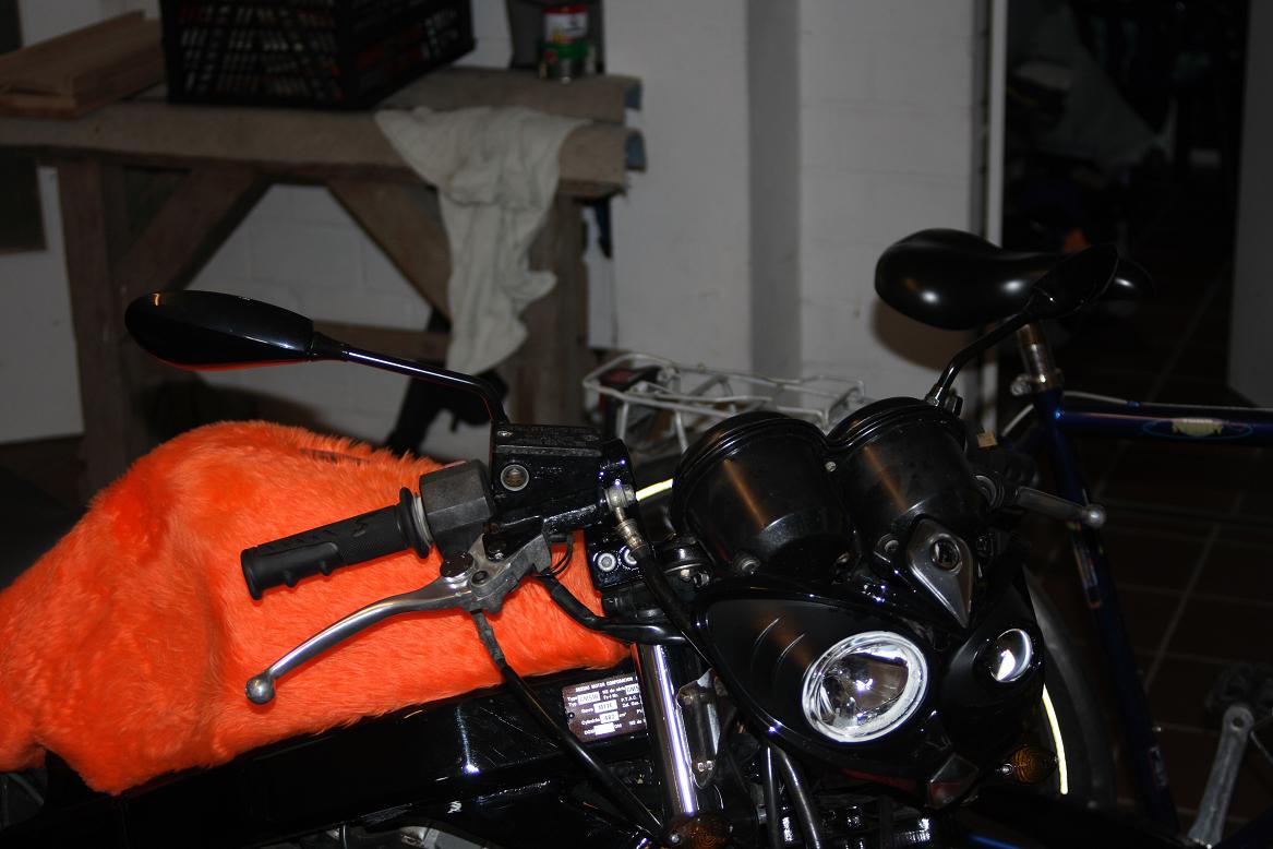 Die lampenmaske hat ja von vorn echt irgendwie nen reiz...aber von der seite...ich weiß haste probiert die näher an die gabel zu setzen oder wolltest nur die orginalen halter wieder hernehmen?