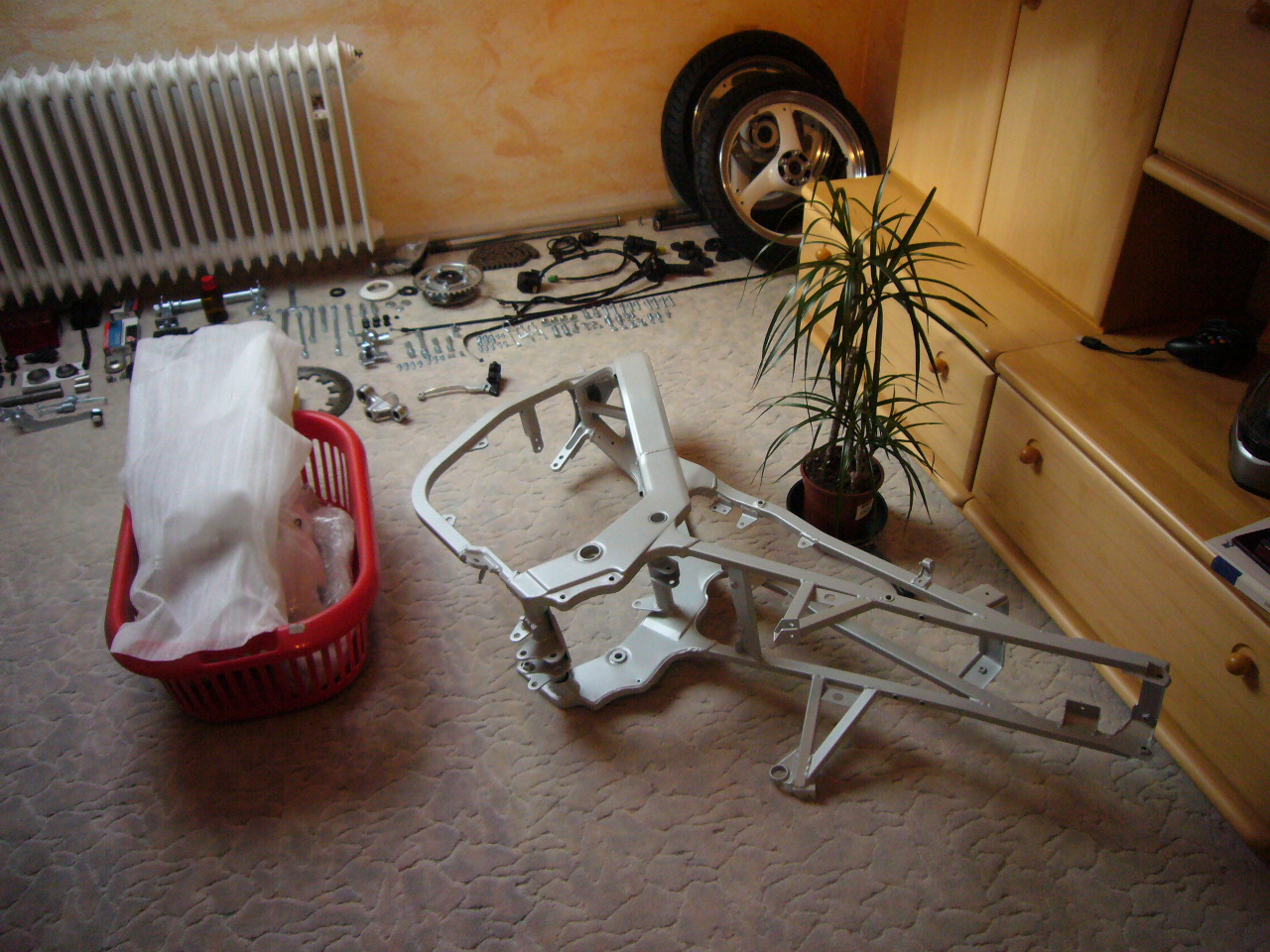 Das schöne ist ja auch, wenn das Mopped so sauber ist kann man zu Hause im Wohnzimmer basteln!