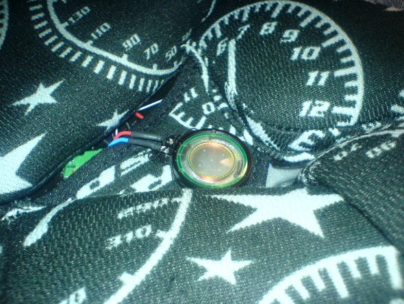 ich hab sowohl den Lautsprecher, als auch die Platine am Futter festgenäht, bei der Platine hat es aber besser geklappt als bei Lautsprecher