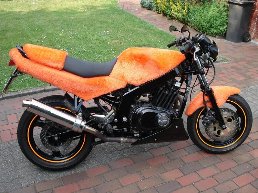 Baujahr 1991 (Gm51B) 50 PS (offene Leistung) 54t km Umbauten/Änderungen: Kunstfell orange Rahmen schwarz lackiert Felgen/Schwinge/Gabel etc. schwarz lackiert BSM Vampire Soziussitzabdeckung Acerbis Cyclops Maske Kennzeichenhalter (selfmade) Felgen Zierstreifen SV 650 Federbein kleine Spiegel kleine Blinker vo/hi Bugspoiler (wohl ein Gimbel nachbau) lg oety PS: hier könnt ihr den ganzen Spaß auch noch nachlesen wenn ihr wollt http://forum.gs-500.de/showthread.php?t=17814 |