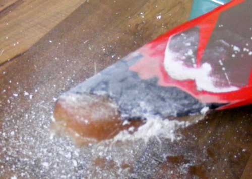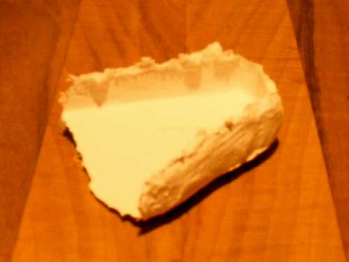 Wenn die Gipsbinden ausgehärtet und durchgetrocknet sind, ist die Negativform fertig und kann gelöst werden. Dann kann auch der Styroklotz entfernt werden. Nun wird alles mit dem beschriebenen heißem Wasser gereinigt (gibts im Fachhandel )