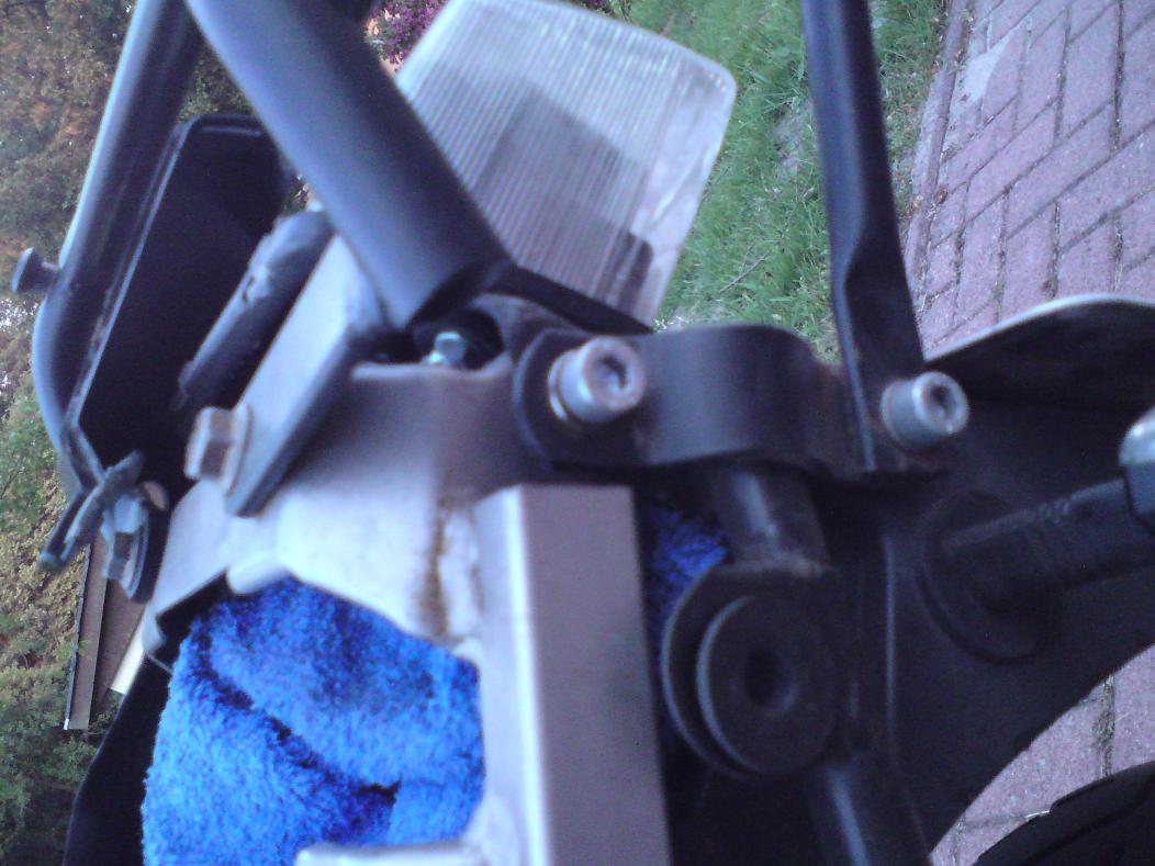 hilft dir das? Die unteren Schrauben von dem gebogenem Bügel mit dem du nix anfangen könntest - die sind nur an dem Träger selbst dran (von INNEN!) - die oberen Schrauben an dem Rahmen und der Rücklichthalterung. Die Löcher B waren schon richtig angedacht - so wie dir auch Goo schon geschrieben hat.