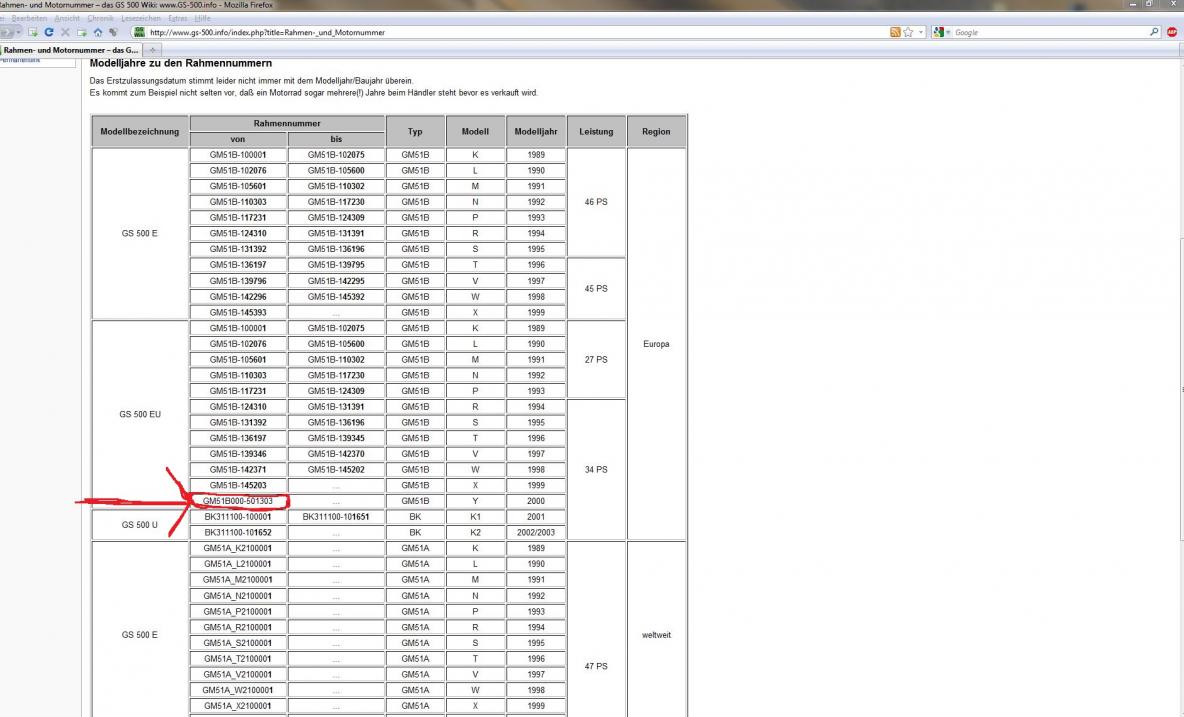 ich habe heute eine GS 500 E gekauft und muss diese drosseln. Nun muss ich wissen, welches Baujahr die Maschine ist. Die Rahmennummer finde ich aber in der Liste nicht und damit auch kein Baujahr. Erstzulassung der Maschine ist Mai 2001. Die Rahmennummer beginnt mit JS1GM51B000... In der Tabelle finde ich GM51A....und dann 000504. Aber nicht die, die bei mir in den Papieren steht. Habe Google schon gequält und die SuFu hier benutzt, aber es bringt nichts. Kennt sich damit jemand aus und kann mir bitte weiterhelfen? Danke |