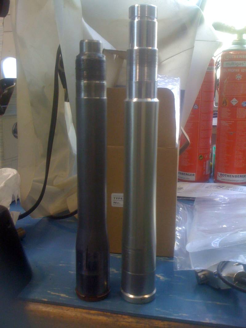 Am Sonntag gehts zum drehen und fräsen, dann sollte sich doch schon einiges getan haben. Ich hoffe ich bekomme noch Bilder hin bevor wir in den Urlaub fahren. Hier mal ein Bild vom Federbein. Heute mal schauen ob wir die Schwingenlager gescheit rein bekommen, und dann noch die Hülsen anpassen, dann sollte das auch fertig werden. |