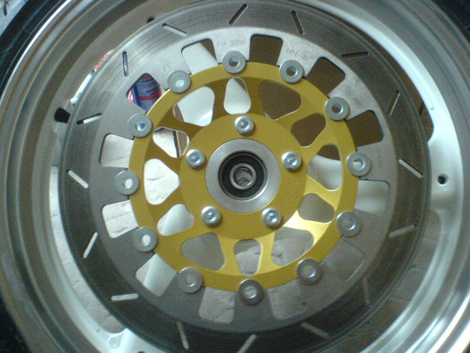 Stahlflexleitungen sind gekommen und auf meine lackierten Teile warte ich sehnsüchtig... Bremsscheibe vorne wurde nun auch montiert (da Pulverbeschichtet) |