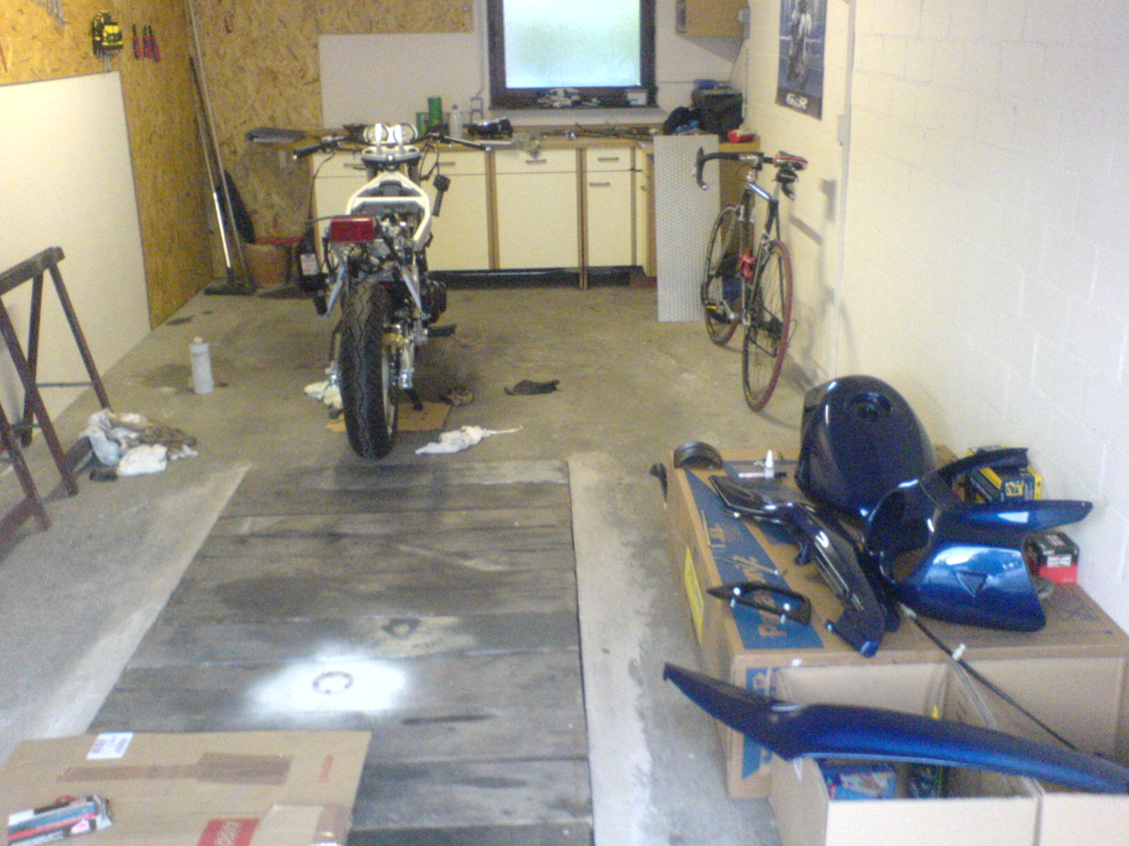 so wieder ein paar aktuelle bilder. Am Woend die Maschiene runter getragen und den Motor eingebaut. Im Moment bin ich noch an der Voredern Bremse entlüften
